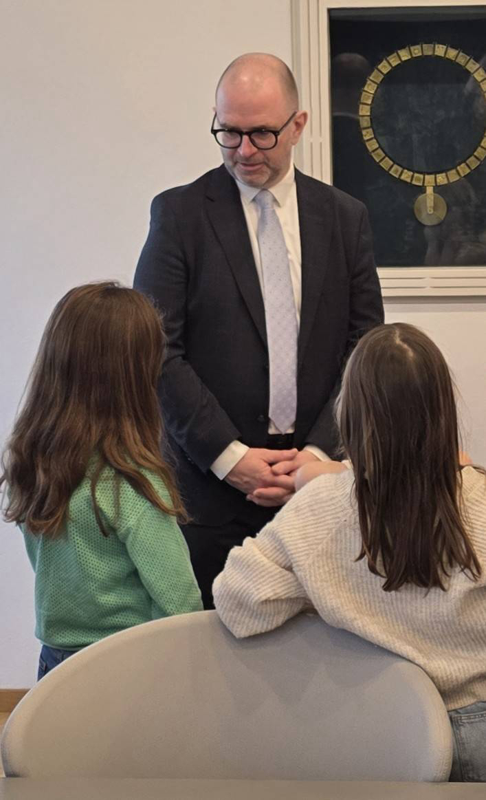 Zu Beginn durften wir sein Büro besichtigen und die goldene Bürgermeisterkette betrachten, welche er zu wichtigen Anlässen trägt.